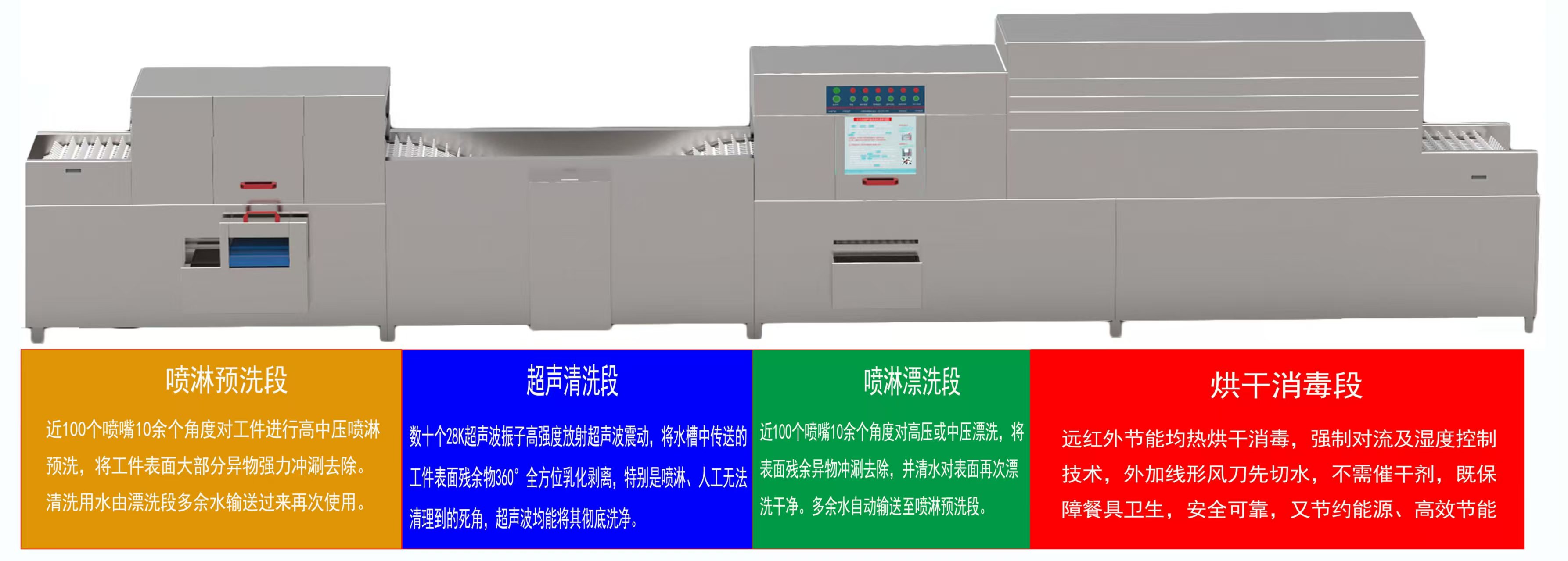 上超全自動超聲波洗碗機:學校飯?zhí)酶咝н\作與健 一、高效清洗,節(jié)省人力?學校飯?zhí)糜貌腿藬导星覕盗魁嫶螅坎徒Y束后堆積如山